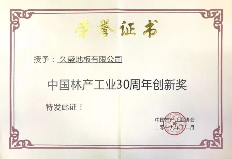 中国林产工业创新奖是国家林业与草原局2009年核定的9个评比表彰项目中的一项,香蕉视频下载链接地板在中国林产工业30年周年之际被授予“中国林产工业行业创新奖”与“中国林产工业30周年突出贡献奖”荣誉称号。